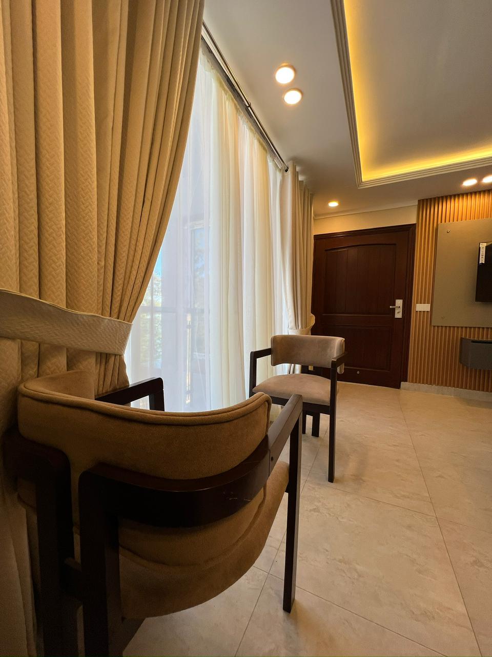 Relax in a spacious private lounge, featuring a 6-seater sofa set and a 46″ flat-screen TV — perfect for cosy gatherings, entertainment, or simply unwinding in style.